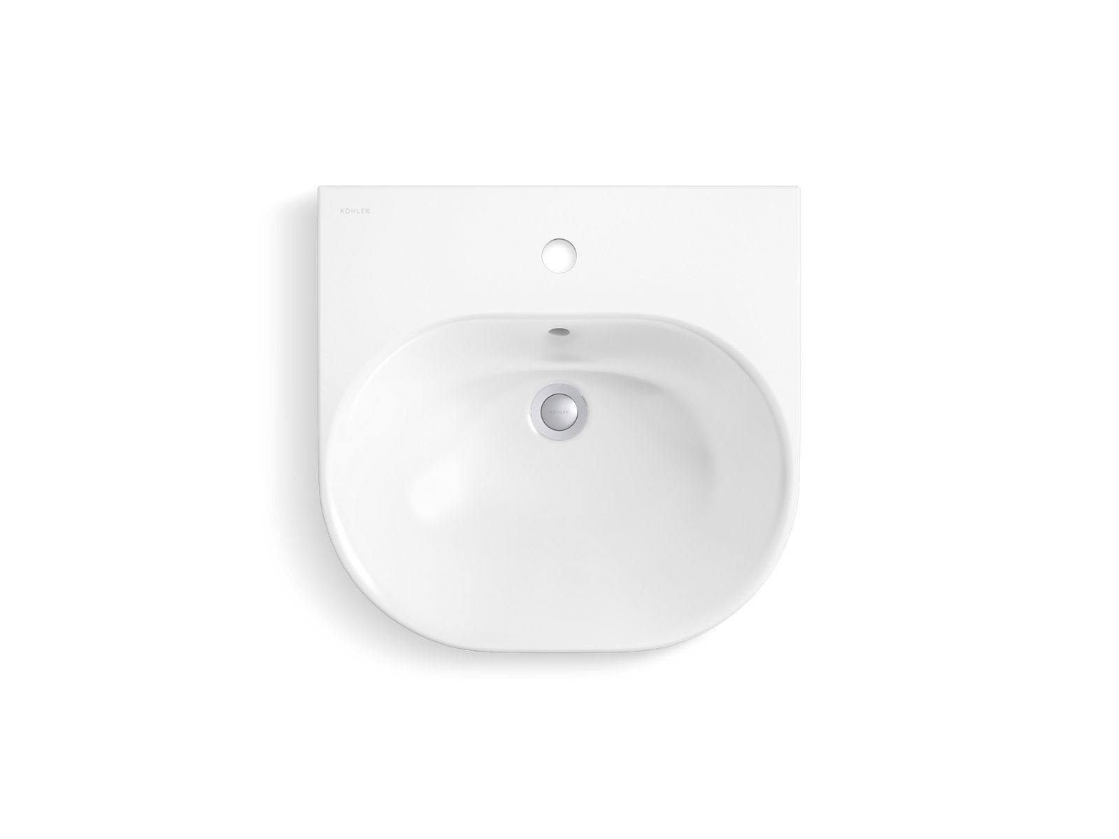 The Span™ oval wall-mount bathroom sink with glazed underside and shroud showcases a minimalist design with gently sloped edges. With a rounded front and squared rear that lines up smoothly with your bathroom wall, the unique geometric silhouette will make a subtle statement in any bathroom. An integrated faucet deck designed for use with your choice of single-handle bathroom sink faucet provides just enough countertop space to place small bathroom essentials, such as soap or lotion. The included Folio™ shroud conceals pipes and creates a sleek semi-pedestal look, while not actually supporting the full weight of the sink.