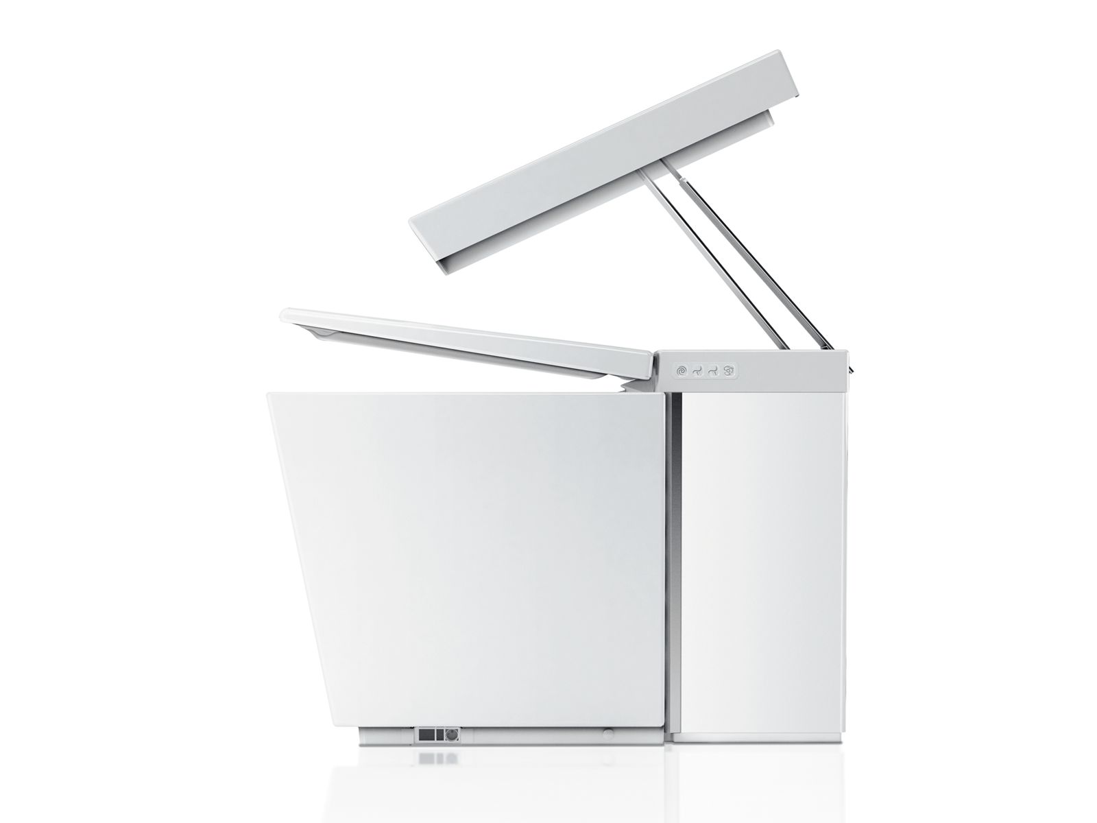 • Motion-activated, hands-free opening/closing of seat and cover.